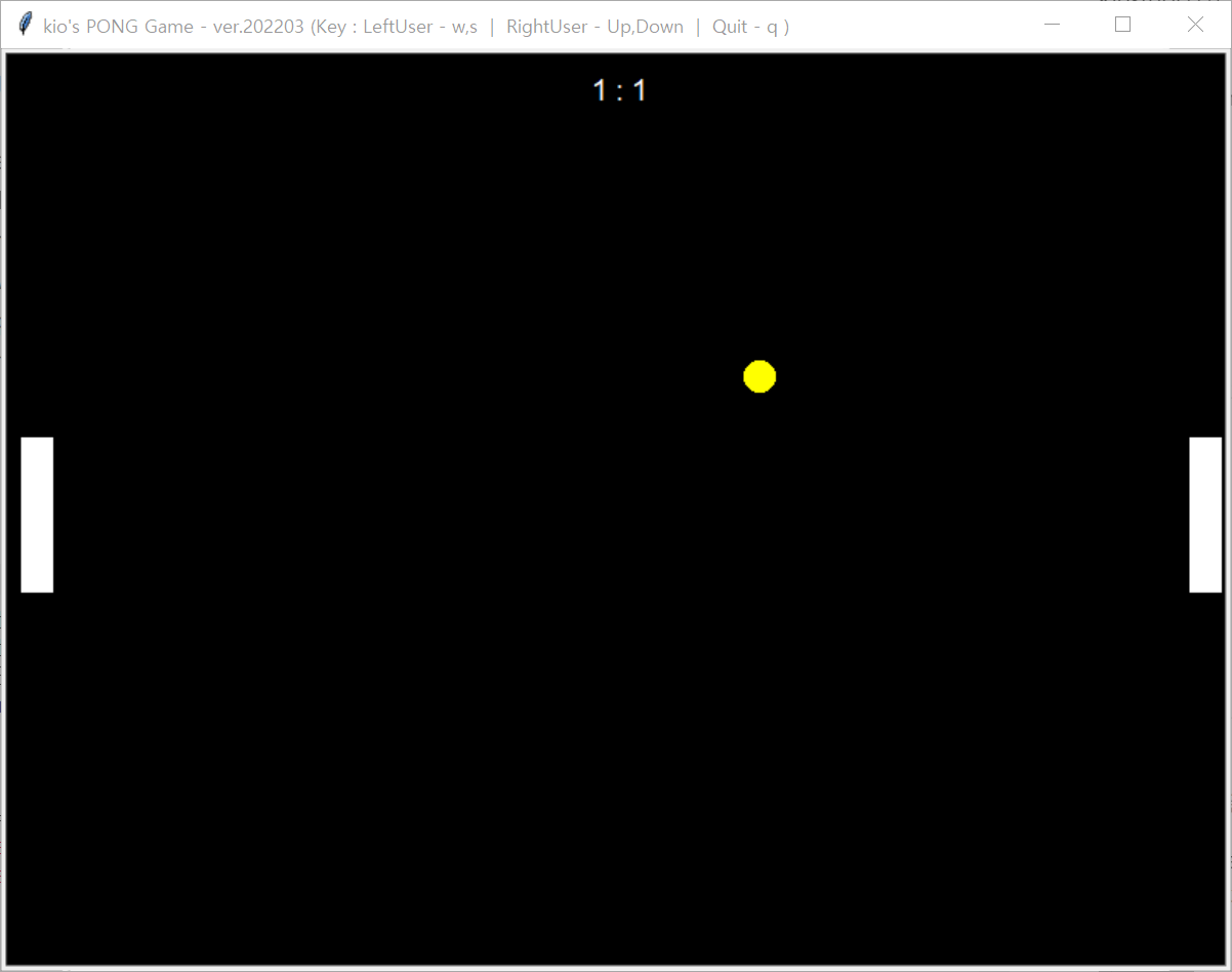 screen.title("kio's PONG Game - ver.202203 (Key : LeftUser - w,s | RightUser - Up,Down | Quit - q )")