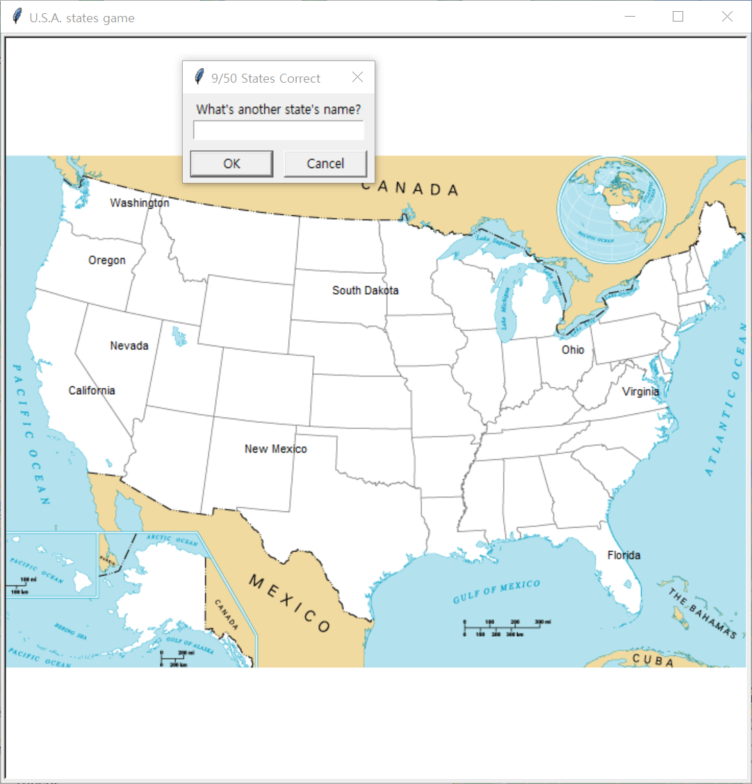 prompt="What's another state's name?").title() #states_data["state"].lower()는 에러나는데 title()은 되는구나